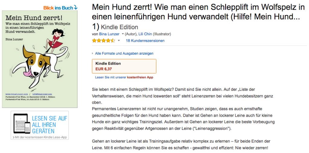 eBook auf Deutsch ab 01.09.2012 – Lunzer, B. 2012: Mein Hund zerrt! Wie man einen Schlepplift im Wolfspelz in einen leinenführigen Hund verwandelt. Purkersdorf: KDP. Lesbar mit kindle, Smartphone, iPad oder anderen Tablets, sowie Computer oder Laptop.